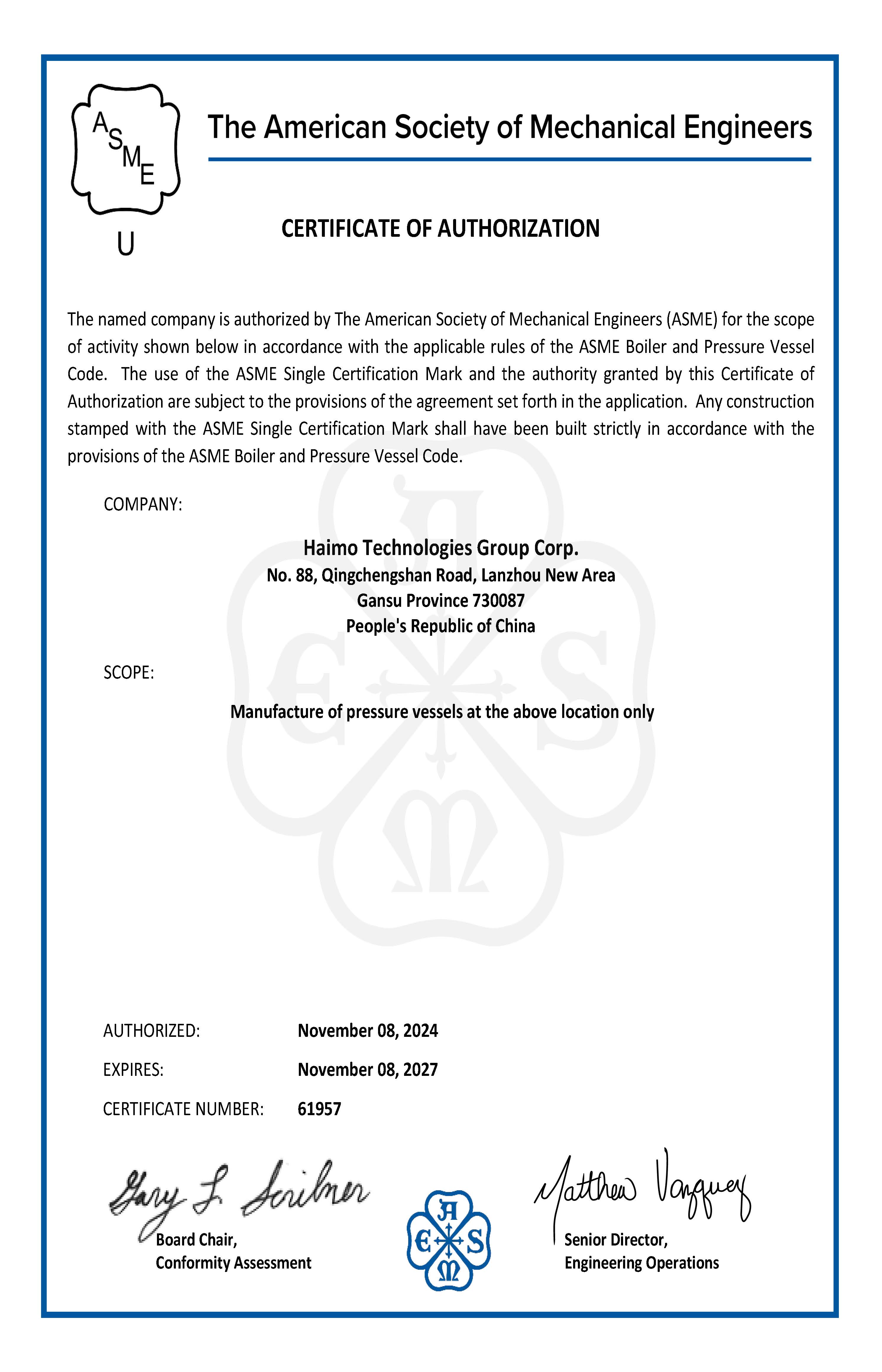 战略性投资了甘肃省一家持有民用核/军用核设备制造许可证的企业中核嘉华设备制造股份公司,标志着公司向核能领域迈出了坚实的一步。