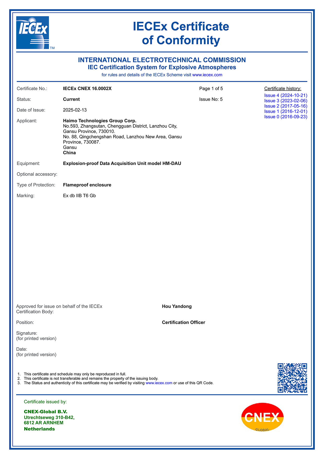 为法国地质服务公司设计建造的符合API 6A标准的5000psi双相不锈钢材质的高温高压多相流量计交付使用,经DNV和ABS等权威机构确认,这是中国首次建造和出口如此高压力等级和高等级材质的API井口设备,是中国井口设备制造技术发展的一个里程碑。