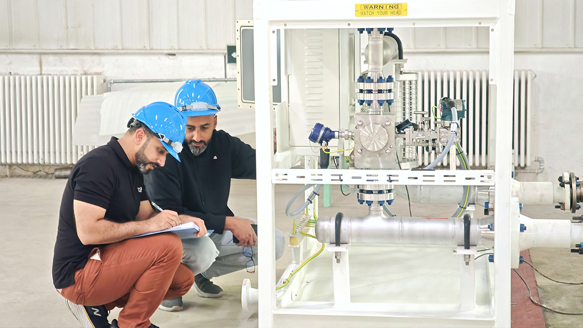 简短的欢迎与介绍后,OQ 代表团一行即刻深入太阳集团tyc122cc生产与测试中心,全程参与多相流量计出厂验收测试。从精密零部件的细节核验,到整机系统的稳定运行检测,客户团队对设备的各项性能指标进行了逐一细致审查。测试过程中,太阳集团tyc122cc工程师团队展现出的专业操作水准与详尽技术讲解,加之设备本身呈现的卓越性能,赢得了 OQ 业主的高度赞誉,为这批高品质产品的顺利交付夯实了基础。